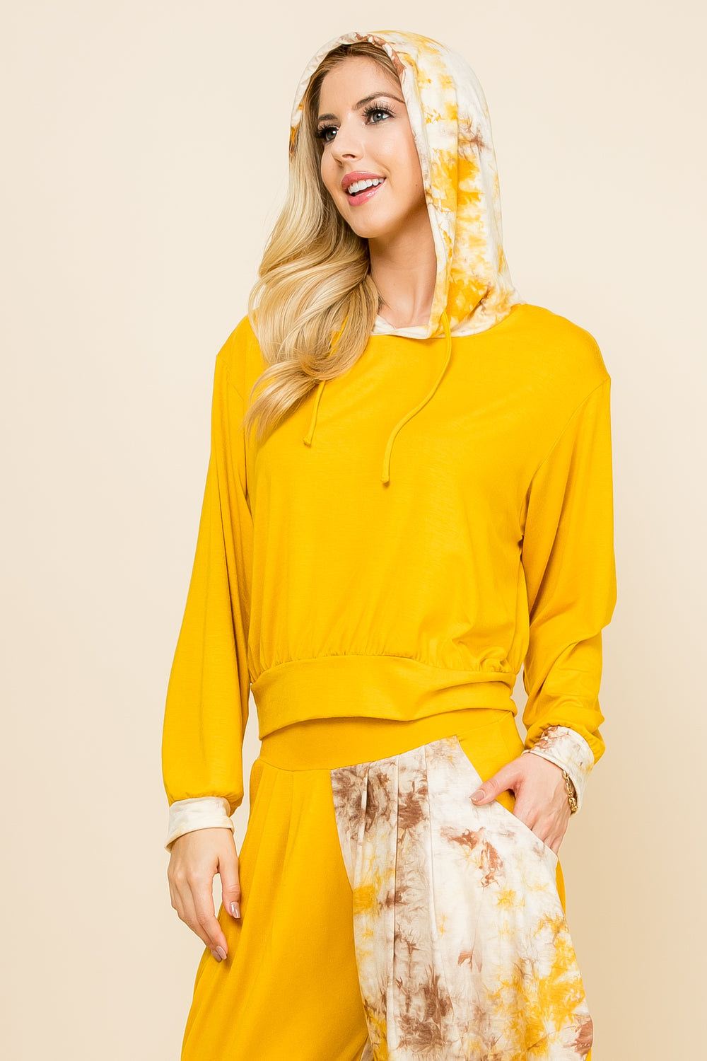 Kooniez Hoodie - Mustard Tie-Dye Patchwork